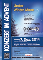 Zu den klassischen deutschen Weihnachtsliedern gesellte sich das von Scheidtweiler eigens komponierte Lied 'Mein Geschenk', in welchem die sich jährlich wiederholende quälende Frage nach dem passenden Geschenk besungen wurde. Beim traditionsreichen 'Am Weihnachtsbaume die Lichter brennen' wird die Erinnerung an die eigene Kindheit und das Elternhaus bei manch einem Zuhörer nicht ausgeblieben sein. Erst zum Schluss hin erklang das beschauliche 'Under Winter Moon', das gefühlvoll vertonte Bild einer verschneiten Winterlandschaft. Spätestens bei diesem Lied wird Chorrage wohl jedes Gemüt besänftigt haben.