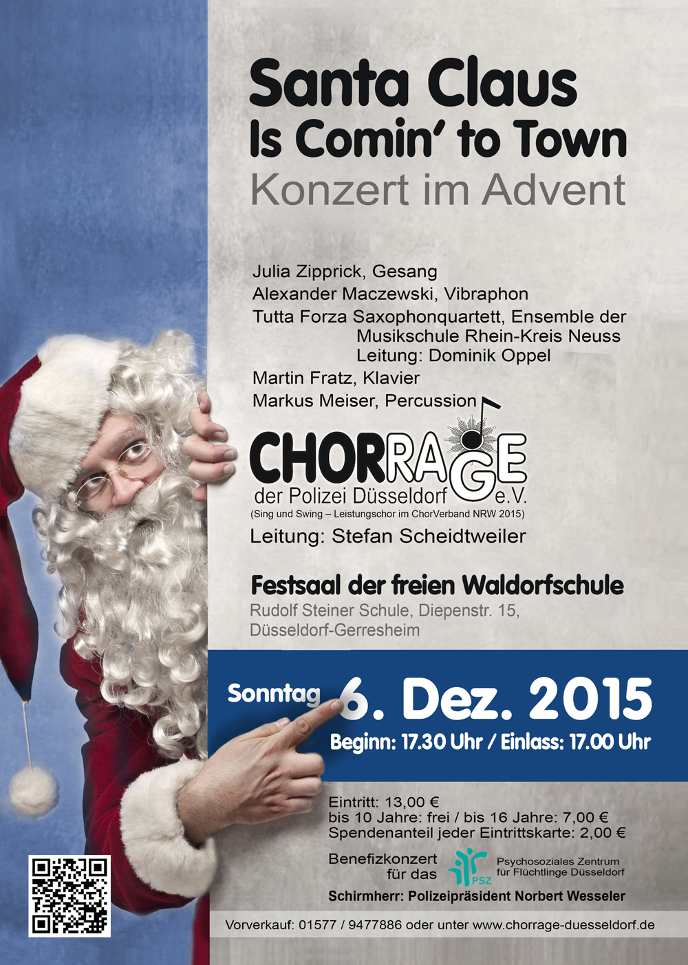 Von Klaus SchröderDer Chor der Polizei, Chorrage, bekommt diesen Dank ausgesprochen für sein Konzert in der Waldorfschule Gerresheim, mit eigenen Interpretationen von "Tears in Heaven", "African Alleluia" und "Walking On Sunshine", aber auch für die Auswahl seiner Gäste, Adrian Kroneberger mit seinen gefühlvollen Balladen, und vor allem für den Auftritt des PolizeiFrauenChors Köln, der "Engel" von Rammstein intonierte und Campinos "Tage wie diese".